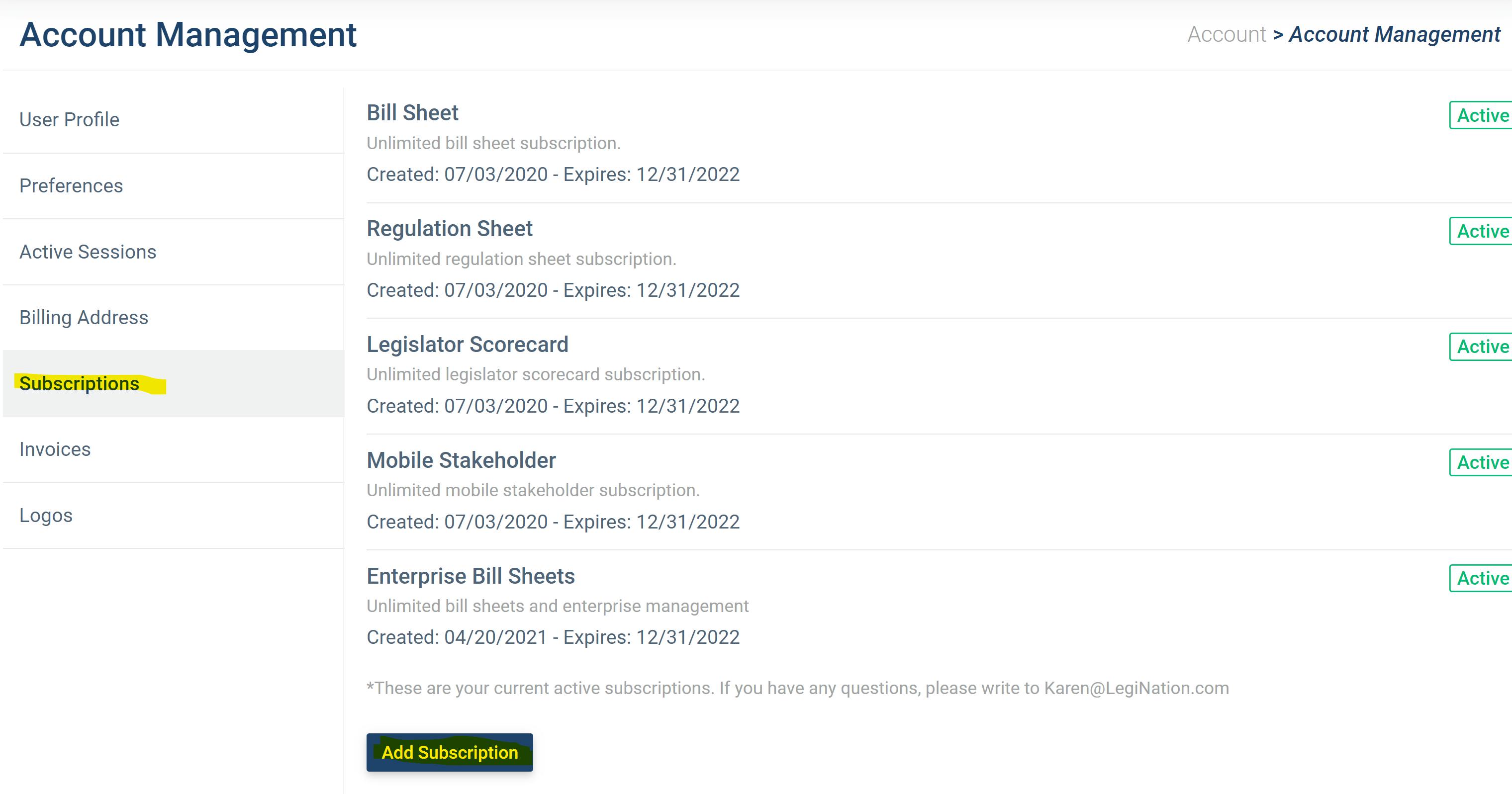 Here's a video showing step by step how to purchase an afternoon alerts subscription. To add the subscription simply log in, choose "Manage Account" from the account menu, and go to the "Subscriptions" tab, as seen below: