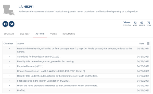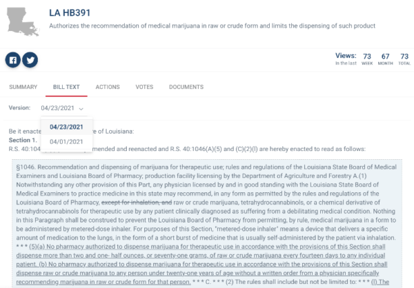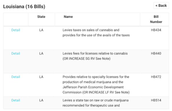 Did you know 16 cannabis-related bills are currently pending in Louisiana? From proposals on full legalization to hemp regulatory tweaks to expanding the current medical cannabis law, the Bill Tracker gives you a quick description of each bill and its number, as well as a link to easily access more granular details.