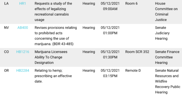 We even have a calendar tool that lets you see a full list of committee hearings and votes that have been scheduled on cannabis, psychedelics and drug policy bills we are tracking—across all states.