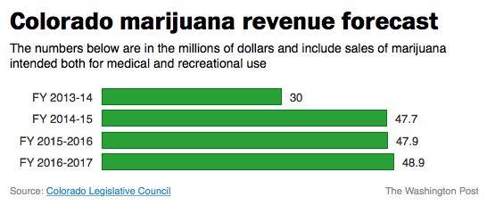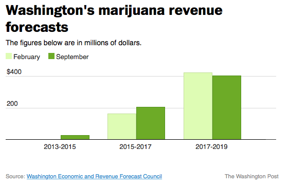 Here is a breakdown of Colorado and Washington’s expected tax revenue from marijuana.