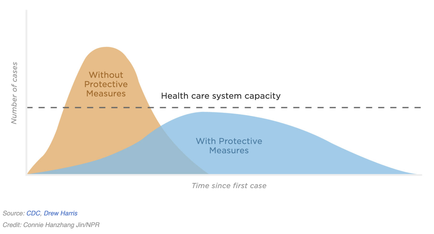 As I am sure everyone is aware, we are living in uncertain times. It seems like federal, state, local, and company policy drastically changes every 12-24 hours. It is hard to keep up with all the moving parts, and to understand why everything is in constant flux. The most important idea to be familiar with when it comes to understanding why certain policies are proposed and adopted, and how experts say we should fight this virus is “flattening the curve”.