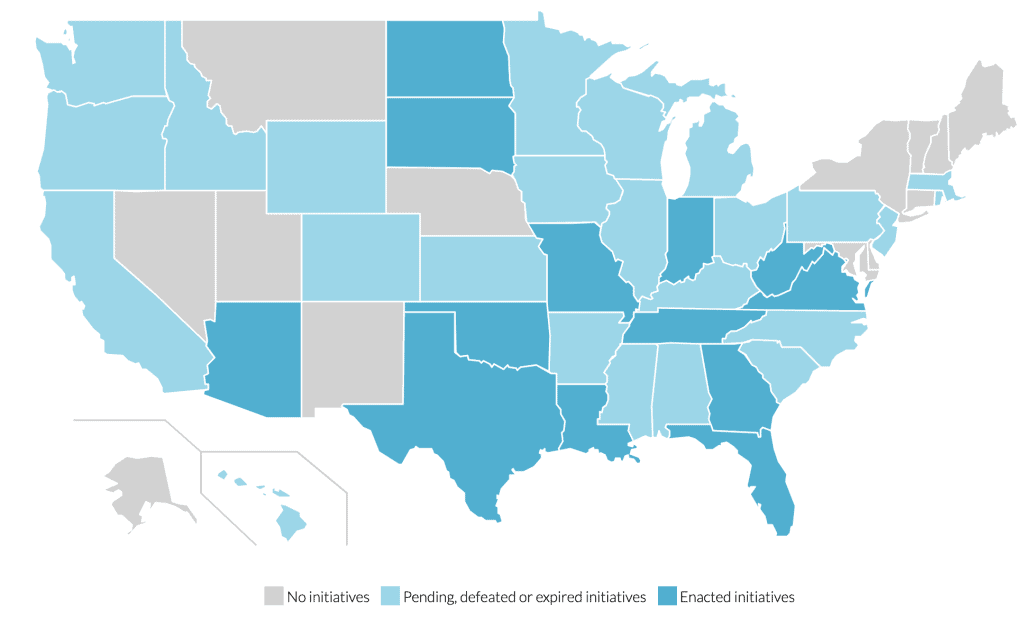 Indiana: This bill, singed in May of this year, increases the penalties associated with protesting. The legislation provides that “a person who, not having a contractual interest in the property, knowingly or intentionally enters the real property of a critical infrastructure facility without the permission of the owner of the critical infrastructure facility or an authorized person commits the offense of critical infrastructure facility.” Trespassing, previously a misdemeanor, is now a Level 6 felony punishable by up to two and a half years in prison and a $10,000 fine. Property damage is now a Level 5 felony, punishable by up to six years in prison and a $10,000 fine. The bill also contains language stating that if one protestor is arrested for trespassing or damages, all other organizations and groups involved in the protest would be at risk of fines up to $100,000.