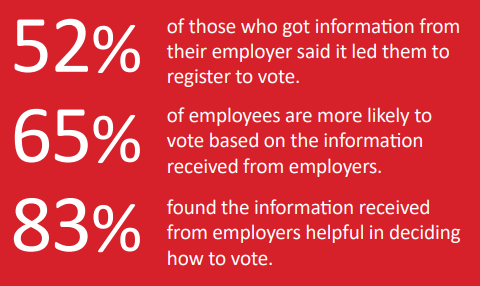 Employees appreciate being provided this information and want to hear from their employer about issues and elections. According to the BIPAC 2016 Employer to Employee Engagement Study: