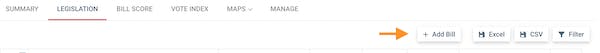 If you need to add an individual bill (or a few bills), head to the Legislation tab and locate the "+Add Bill" button.