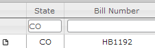 You can filter bills using the filter button at the bottom of the grid. The filter button opens up a blank row at the top of the bill sheet. In the blank field enter the text you want to filter on – a state code, for example, or a bill number, or a word to filter by in the name or keyword columns. This will narrow the bills to just those containing the text you entered. To undo the filter, erase the text you entered.