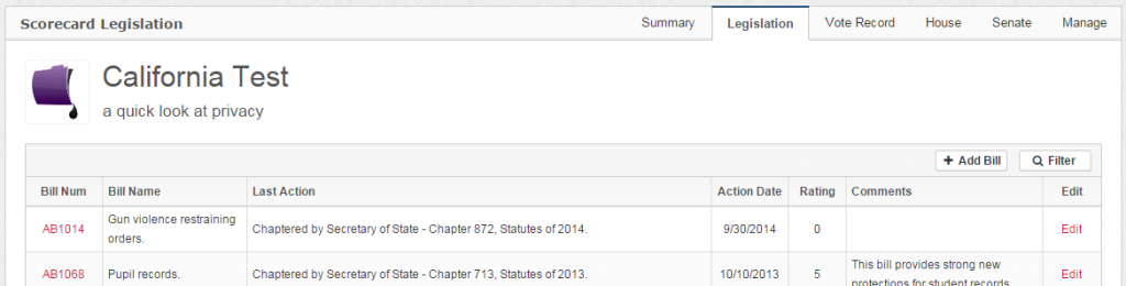 About BillTrack50 – BillTrack50 is a user friendly free service that provides legislation research in all 50 states and federally. BillTrack50 also offers legislation and regulation tracking across the nation with tools to help organization stay on top of changes (bill sheets and alerts) and share legislation they are tracking with key stakeholders (legislator scorecards, widgets and stakeholder pages). If you are interested in learning more about how BillTrack50 saves organizations time and money, sign up for a demo and try it out BillTrack50 Pro for a month, for free.