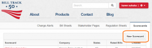 From the home screen choose the scorecard tab and push the “New Scorecard” button. You’ll need to choose what state the scorecard is for (for Congress pick “United States” from the list) and then give your scorecard a name. Then pick which bill sheet you want to start from. If you leave this choice blank you will get a chance to add individual bills to your scorecard after you create it. That’s it.