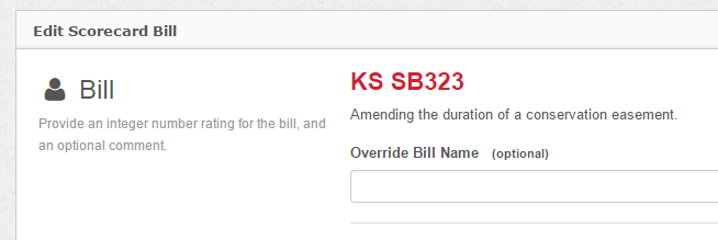 Some states do a nice job naming their bills, some not so much. Sometimes your bill will have a title that simply isn’t descriptive, or is way to long or way to short, or is flat out confusing. So we’ve added a way for you to override the state name with your own. When you edit a bill on your scorecard, you will now notice the bill number and bill name at the top of the edit screen, and a place to override the official bill title. You can copy and paste the state’s title and make small edits, or you can simply start from scratch and give the bill a more descriptive and/or intelligible name. If you don’t enter anything in this box, your scorecard will continue to use the official state title.