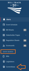 In the QUICK SEARCH section of the navigation panel, you’ll notice there is a Committee Search option: