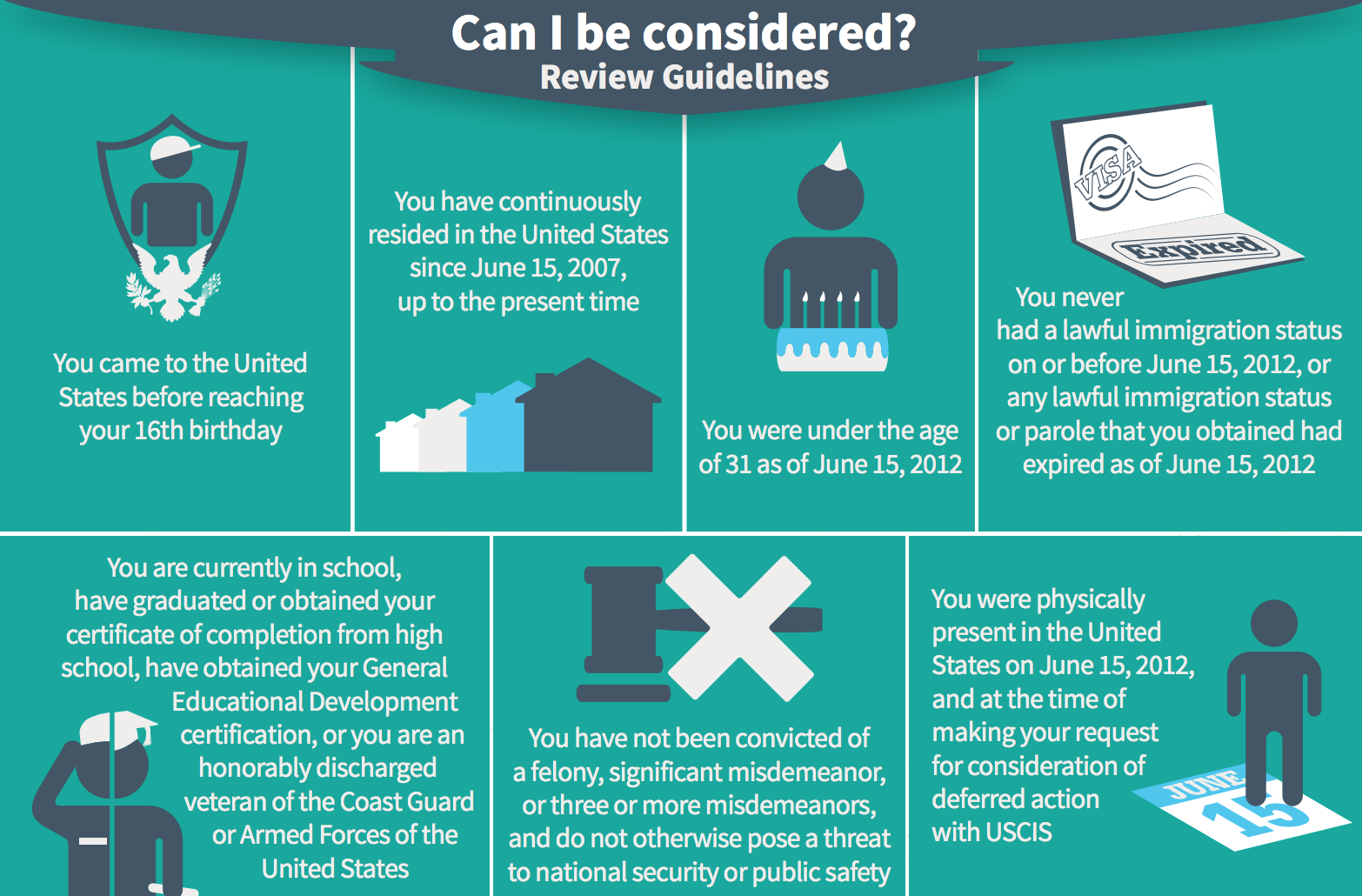 To gain DACA status, these young people need to undergo intensive background checks, finger printing and provide extensive information to government so the government knows who you are and what you are doing. The requirements to qualify for DACA are as follows: