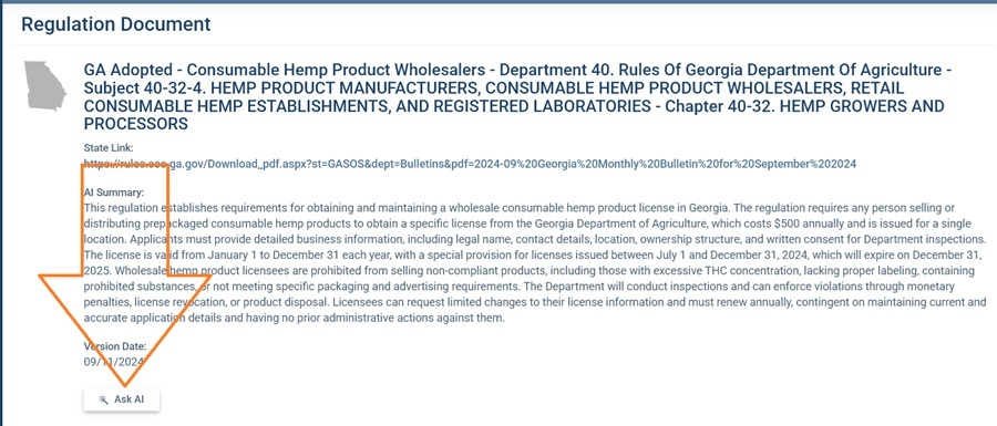 Beneath the AI Summary and the Version Date you will see the Ask AI button: