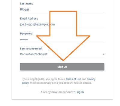 Click on our “Sign Up” button from the BillTrack50 homepage. From there, you’ll be able to register to create an account: