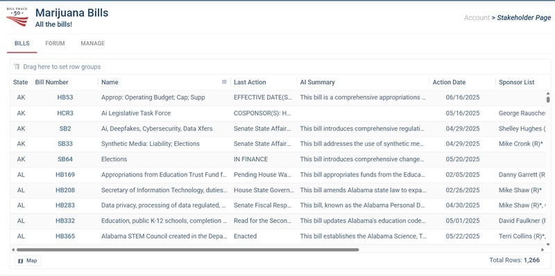 The stakeholder page is a customizable, interactive grid that you can publish on your website or share via link. You choose which bill or regulation information to share, including your own comments and calls to action.