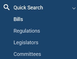 NOTE: Quick Search ONLY searches bills from the current session, or regulations from the past 12 months. If you want to find older bills or regulations then you will have to search using a bill or regulation sheet instead. These are only available to subscribers.