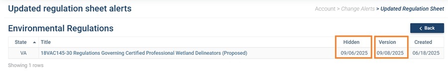 It will show you the date the regulation was hidden and the date of the new version - this is the same regulation we identified earlier.